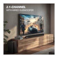 2.1 Channel With Wired Subwoofer : This soundbar comes with a wired subwoofer for a heightened relaxation while unwinding to your favorite content.