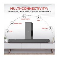 Connectivity - All your devices are made accessible by the wireless, wired and other forms of connectivity, viz., Bluetooth V5.0, AUX, USB, Optical, and HDMI ( ARC ) with the versatile soundbar.