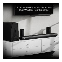 5.1.2 Channel With Wired Subwoofer & Wireless Speakers : Delve into the content with the captivating 5.1.2-channel audio. Not just the soundbar, but the accompanying subwoofer along with the two wireless rear satellite speakers augment the sound that encapsulates you for an enthralling feeling. |
